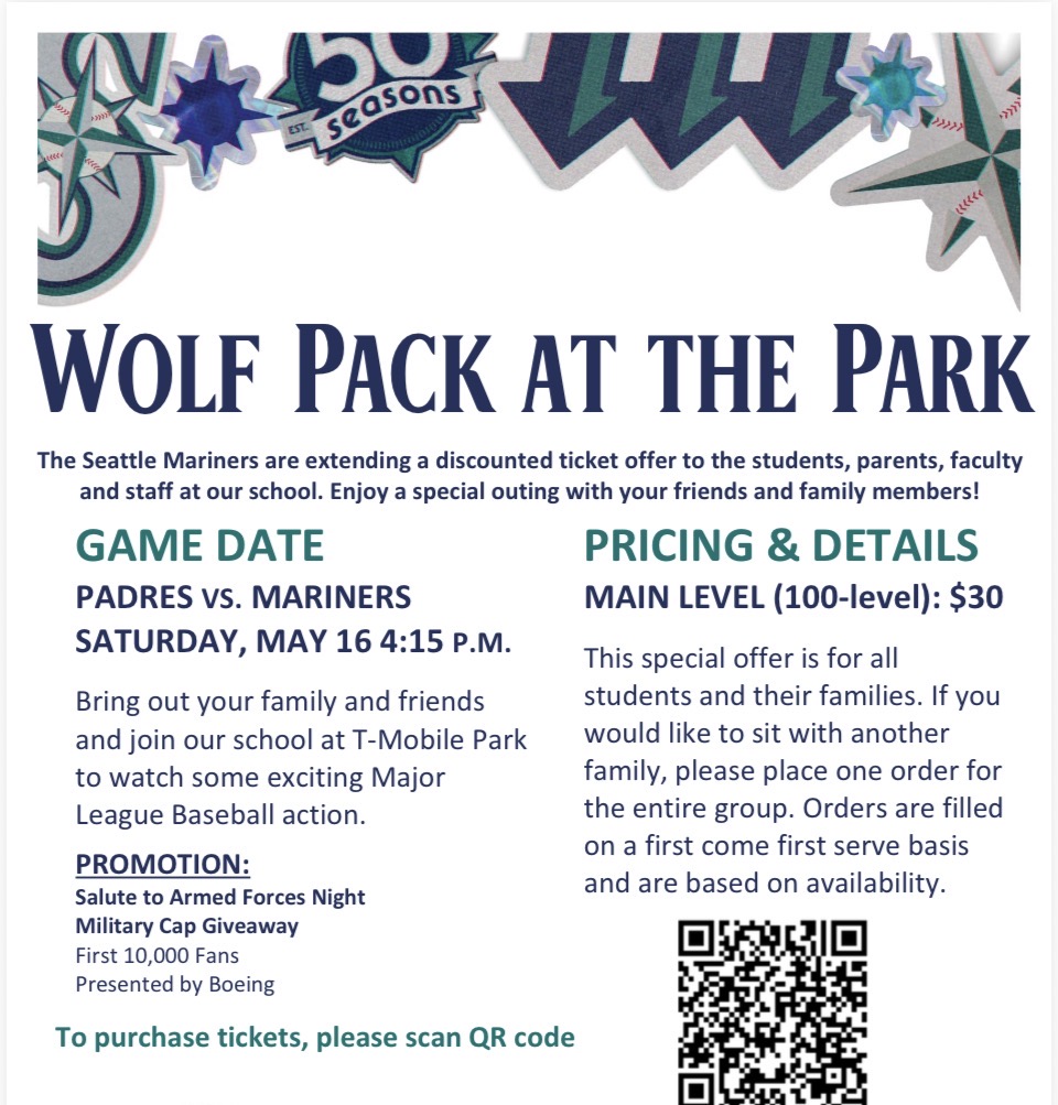 We hope you'll join us for Wolf Pack at the Park on Saturday, May 16th! You can purchase discounted Mariners tickets ($30) by clicking HERE.
